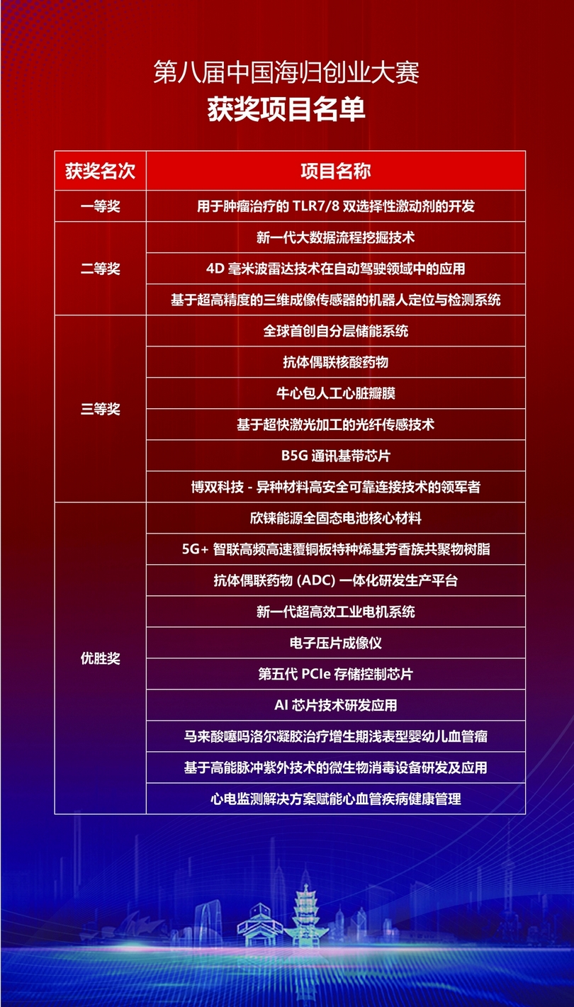 2022(第八屆)中國海歸創(chuàng)業(yè)大賽貫徹落實(shí)習(xí)近平總書記在中央人才工作會(huì)議上提出的深入實(shí)施新時(shí)代人才強(qiáng)國戰(zhàn)略、加快建設(shè)世界重要人才中心和創(chuàng)新高地的要求,以及給南京大學(xué)留學(xué)歸國青年學(xué)者的回信精神,圍繞高水平科技自立自強(qiáng)和經(jīng)濟(jì)社會(huì)高質(zhì)量發(fā)展的需要,進(jìn)一步加強(qiáng)平臺開放,采用部委指導(dǎo)、協(xié)會(huì)統(tǒng)籌、地方承接、合作辦賽的新型機(jī)制,由留創(chuàng)園工委會(huì)聯(lián)合江蘇省高新技術(shù)創(chuàng)業(yè)服務(wù)中心、蘇州國家高新區(qū)管委會(huì)等7家單位共同主辦,另有20多家各地單位協(xié)辦,發(fā)揮地方資源稟賦優(yōu)勢,在空間、政策、資本、產(chǎn)業(yè)對接等方面進(jìn)一步提升服務(wù)能級,支持更多優(yōu)質(zhì)海外項(xiàng)目和海歸人才落地實(shí)施成果轉(zhuǎn)化和科技創(chuàng)業(yè)。本屆大賽自7月啟動(dòng)以來,經(jīng)項(xiàng)目報(bào)名和初審、公示,共有119個(gè)海歸項(xiàng)目團(tuán)隊(duì)入圍復(fù)賽。復(fù)賽于2022年12月29日—30日采用線上形式舉行,將通過路演、評審產(chǎn)生20個(gè)項(xiàng)目晉級決賽。2023年1月13日,由中國技術(shù)創(chuàng)業(yè)協(xié)會(huì)留學(xué)人員創(chuàng)業(yè)園工作委員會(huì)聯(lián)合江蘇省高新技術(shù)創(chuàng)業(yè)服務(wù)中心、蘇州國家高新區(qū)管委會(huì)等7家單位共同主辦的第八屆中國海歸創(chuàng)業(yè)大賽決賽在蘇州高新區(qū)落下帷幕。