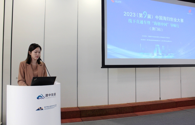 5月19日,2023(第九屆)中國海歸創(chuàng)業(yè)大賽線下直通車暨海創(chuàng)中國導師行活動(澳門站)在澳門青年創(chuàng)業(yè)孵化中心成功舉辦。本次活動由中國技術(shù)創(chuàng)業(yè)協(xié)會留學人員創(chuàng)業(yè)園工作委員會主辦,澳中致遠投資發(fā)展有限公司、澳門青年創(chuàng)業(yè)孵化中心承辦。中國技術(shù)創(chuàng)業(yè)協(xié)會副理事長、留學人員創(chuàng)業(yè)園工作委員會專職副會長兼秘書長郎靖,留創(chuàng)園工委會副秘書長胡頌華,澳門青年創(chuàng)業(yè)孵化中心綜合業(yè)務部副總監(jiān)徐美珊及3位評委導師出席活動。