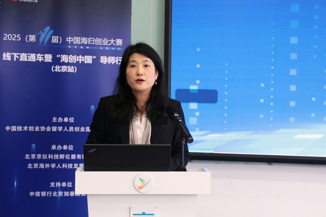5月9日下午,2025(第11屆)中國(guó)海歸創(chuàng)業(yè)大賽線(xiàn)下直通車(chē)暨“海創(chuàng)中國(guó)”導(dǎo)師行(北京站)活動(dòng)在京儀科技孵化器(中關(guān)村京儀留學(xué)人員創(chuàng)業(yè)園)成功舉辦?;顒?dòng)由中國(guó)技術(shù)創(chuàng)業(yè)協(xié)會(huì)留學(xué)人員創(chuàng)業(yè)園工作委員會(huì)主辦,北京京儀科技孵化器有限公司、北京海外學(xué)人科技發(fā)展中心承辦,特邀華能長(zhǎng)投、凌霄資本、長(zhǎng)赫投資、清控科創(chuàng)、長(zhǎng)城戰(zhàn)略研究所等機(jī)構(gòu)現(xiàn)場(chǎng)觀摩。留創(chuàng)園工委會(huì)執(zhí)行秘書(shū)長(zhǎng)劉洪志、京儀集團(tuán)副總經(jīng)理王莉、京儀科技孵化器董事長(zhǎng)楊曉霞出席活動(dòng)。