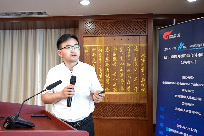 5月22日,由中國技術創(chuàng)業(yè)協會留學人員創(chuàng)業(yè)園工作委員會主辦、濟南留學人員創(chuàng)業(yè)園承辦、濟南市人才服務中心支持的2025(第11屆)中國海歸創(chuàng)業(yè)大賽線下直通車暨“海創(chuàng)中國”導師行(濟南站)活動在濟南藥谷成功舉辦。中國技術創(chuàng)業(yè)協會副理事長、留學人員創(chuàng)業(yè)園工作委員會專職副會長兼秘書長郎靖出席活動并講話,濟南留學人員創(chuàng)業(yè)園、創(chuàng)業(yè)服務中心副主任劉麗致辭。